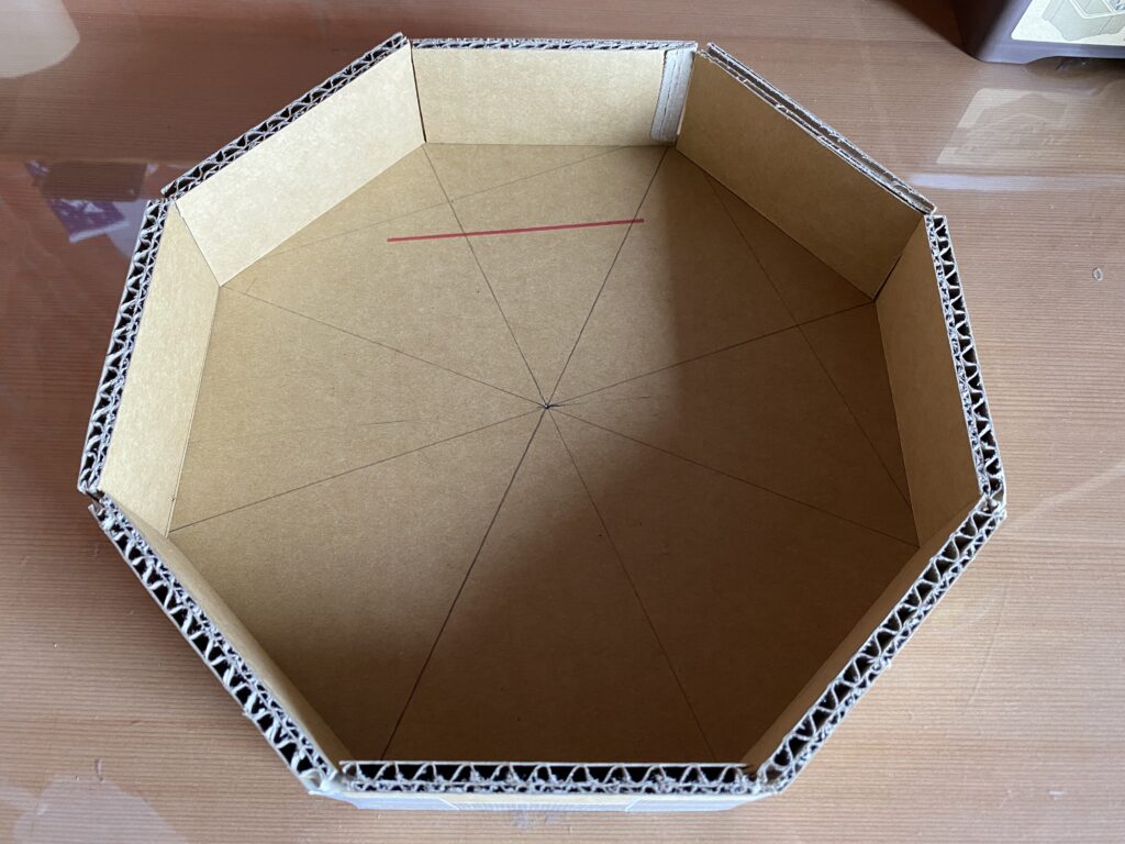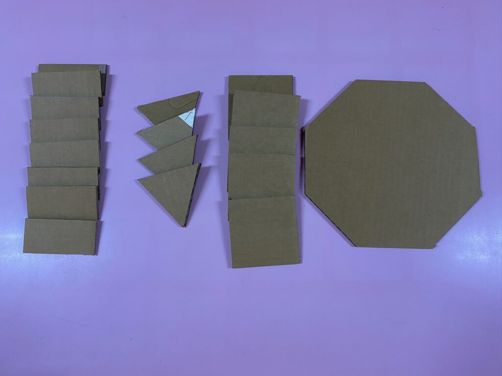 ①まずは正八角形の各辺に長方形を立てるように貼り付けます。